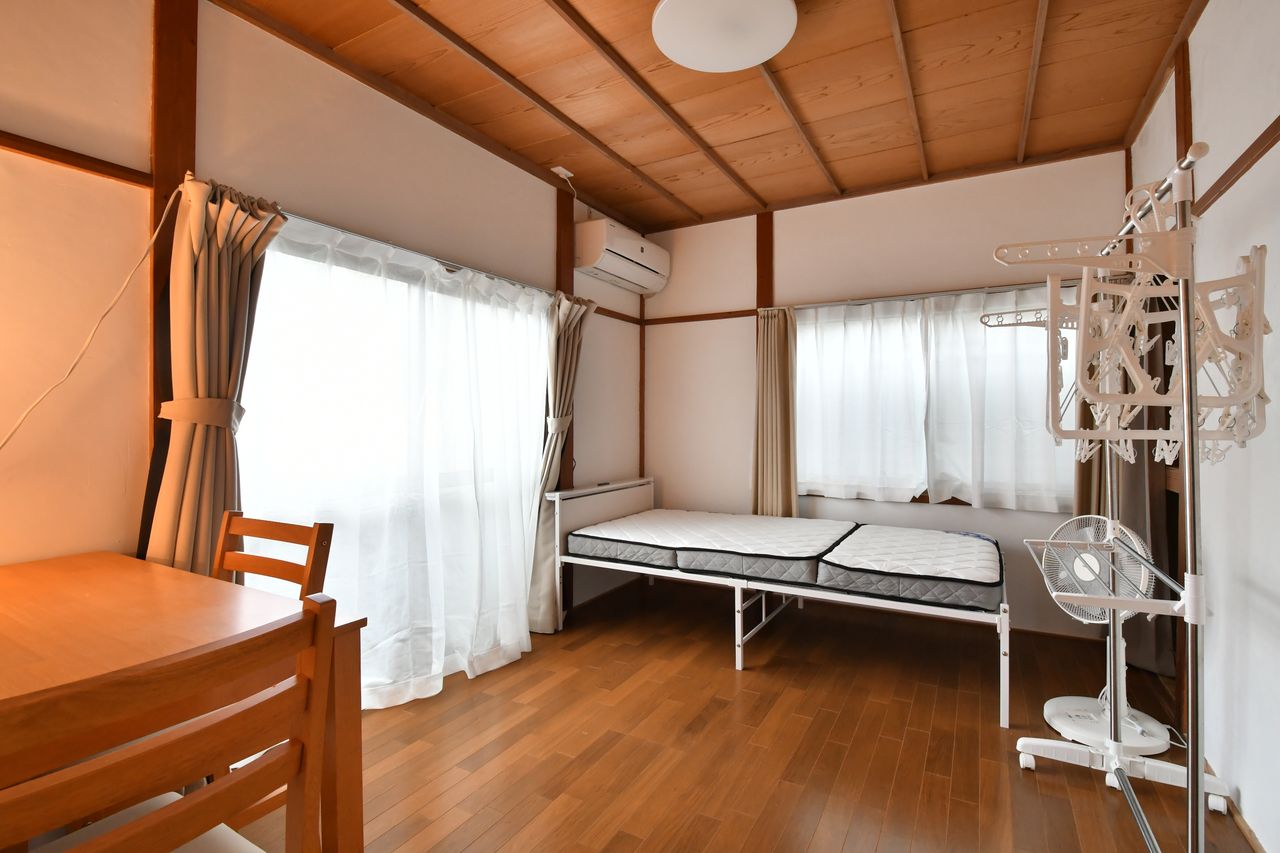 5部屋ある一戸建てをシェアハウスへ2017年9月リフォーム致しました。愛犬家住宅コーディネーターが愛犬の為を想って作ったシェアハウスです。ペット可の物件は増えてきていますが、ペットの事を考えて作られた部屋は少ないと思います。室内で飼う事が多くなった今、愛犬が室内でケガをする事が増えてきています。床が滑って転んでしまい、骨折や脱臼、犬種によってはヘルニア、ストレスを感じ、無駄吠えや、体調を崩す事もあります。この愛犬家シェアハウスはこのような愛犬の為、ケアを考えて作ったお部屋です。まず、一番多い床で滑る事をケアすべき、床を特殊なガラスコーティングを施し、愛犬が滑る事を軽減します。このコーティングは空港や病院などでも使用されているもので、一度コーティングを施せば、半永久的に効果が持続し、滑りにくい、傷や汚れに強く、掃除もしやすい、唾液やアンモニアなどにも強いので、床が剥げる事もなくなります。愛犬がリビングで走っても滑る事も減り、ケガの予防に繋がります。そして、敷地内にはドッグランを作ってあります。下にはウッドチップを敷き、足などへのダメージを軽減し、お仕事で毎日散歩するのは難しい方もいると思います。元々犬は狩猟などを行ってきましたので、犬種によっては、日々運動をしないと、ストレス、そして肥満になってしまう事も・・・。自由に遊ばせる事で、ストレス解消にもなりますし、その間で別の事が出来るので、時間を有意義に使えます。室内の洗面台も愛犬の事を考えて作られた洗面台を使用しています。もちろん人も使えるので安心して下さい(笑)室内で飼うようになり、愛犬が皮膚の病気になる確率も増えてきました。エアコンなどの風による乾燥やストレスが原因になる事も。この洗面台はシャワーからマイクロバブルが出ます!毛穴の奥まですっきり洗えるので、自宅でグルーミングが出来ますし、ストレス解消、皮膚病予防にもなります。洗面台のボウルは底が平らになっており、更に愛犬が滑らないように、滑り止めシートがついています。排水口も大きく、毛によって詰まる事もなくなり、リードフックが付いているので、逃げ出す事も防ぎます。そして、フットスイッチによって、足で水を出し止め出来るので、両手を使って、シャンプーやブラッシングをする事が出来ます。水を出しっぱなしにしなくてすむので、節水にも繋がります。シャンプーの後はトリミングプレートに乗せ、ドライヤーが固定出来ますので、両手で優しく乾かす事が出来ます。愛犬も両手で支えて貰えることで安心出来ると思います。壁紙もリビングは腰壁にし、下を傷や汚れに強い素材、上はクロスで消臭効果のあるクロスを使用しており、愛犬の匂いを吸収し、清潔な空間を作ってくれます。近くには動物病院や無料カウンセリングを行っているドッグトレーニングのお店もあります。ホテルやトリミングなども行っていますので、是非ご興味のある方は行ってみて下さい!各部屋には32型のTV・TV台・カーテン・照明がついており、共用部には、49型TV・冷蔵庫・洗濯機・炊飯器・電子レンジ・ケトル・掃除機・調理器具や食器など生活に必要な物は用意しております。車をお持ちの方は約50mのところに月極駐車場があります。その他、約110mにコインランドリー、約800mで健美の湯、約800mでレンタルトランクルームがあります。公園なども近くにあり、愛犬家が集うシェアハウスになり、それぞれの意見交換や、仲良くなれば、お互いの愛犬の面倒を見てあげるような環境が作れれば最高だなと思います。