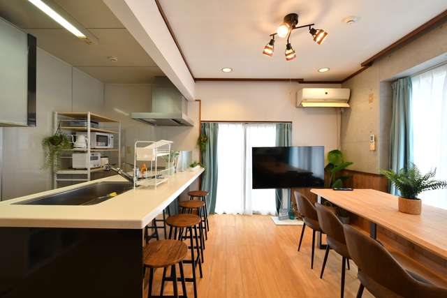キッチンは横幅3mほどあり、広々調理ができます。天板もステンレスなので、調理していて気分が上がるキッチンです。