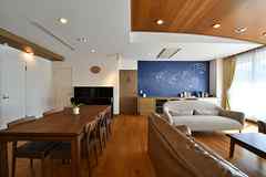 居間で、時々みんなが集いパーティでわいわいがやがや!英語対応可。テレワーク用コワーキングルーム3室無料で利用可。コロナ対策も徹底!