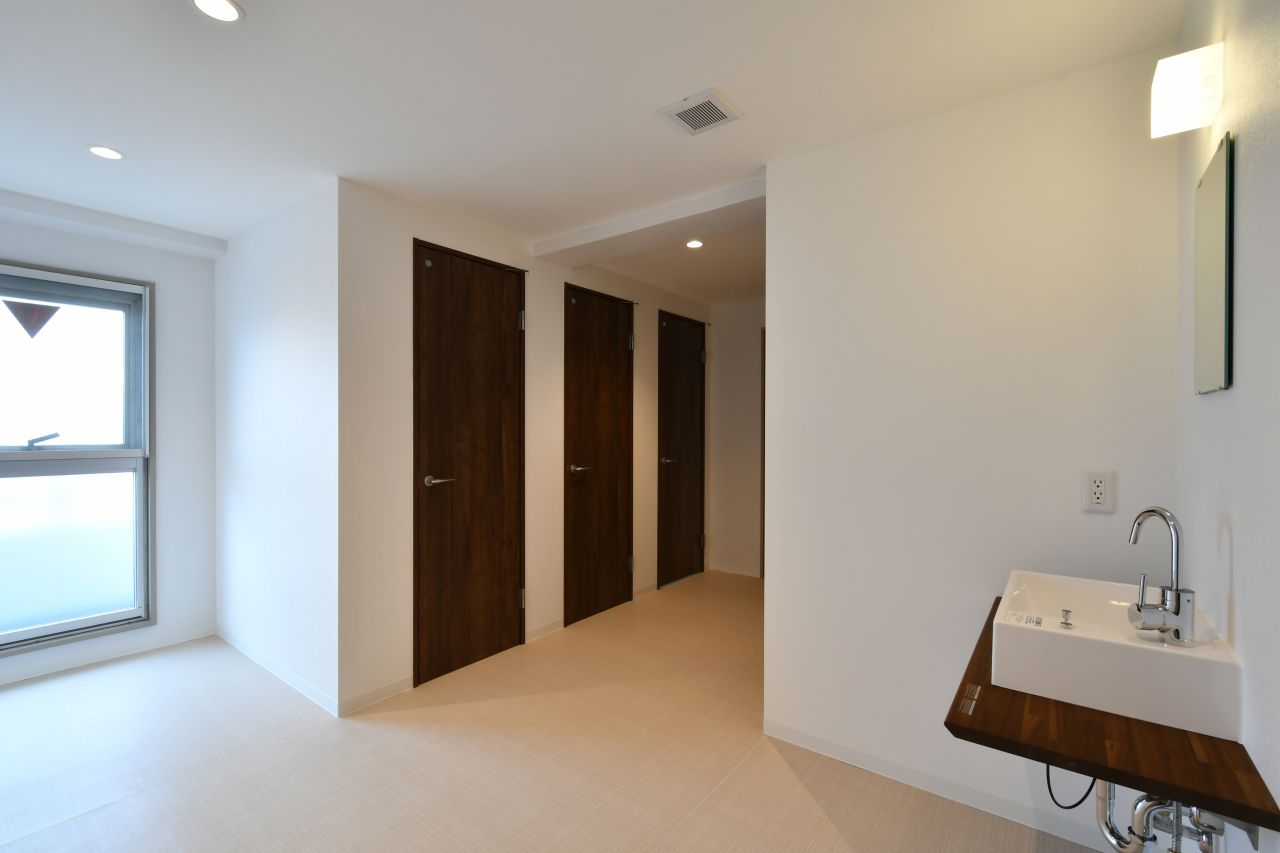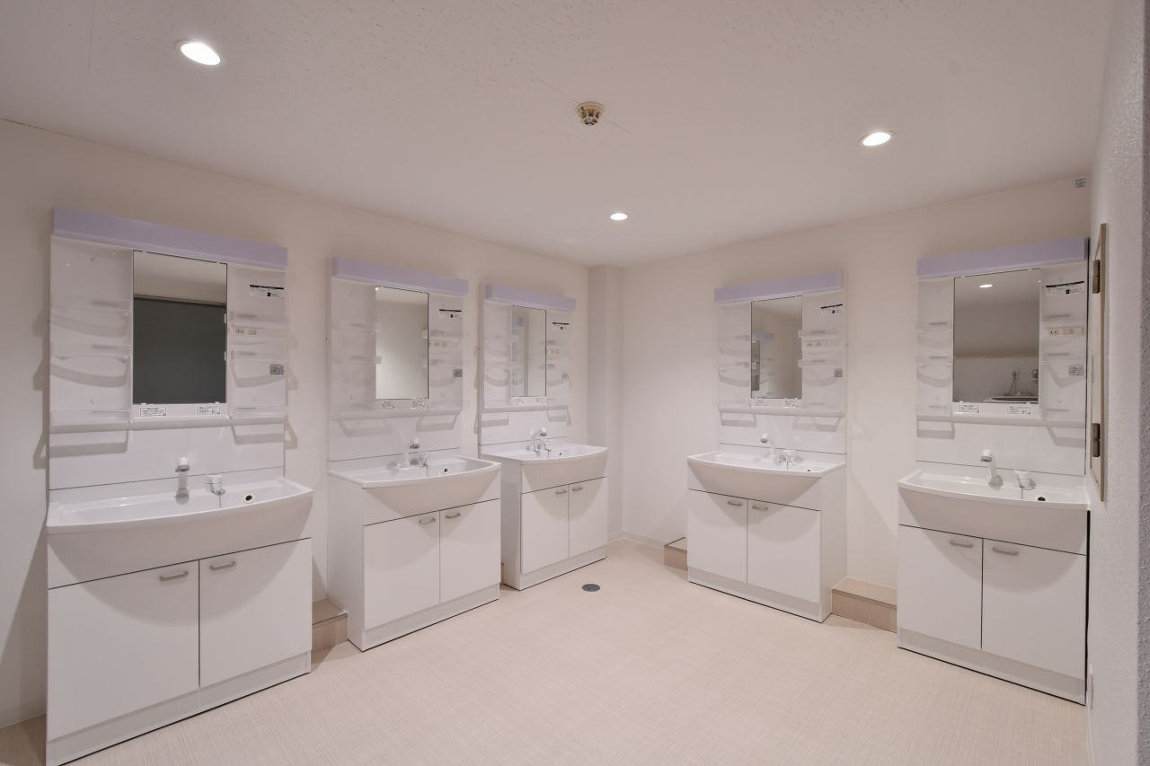 各部屋に洗面台がついてるのがポイント。身支度が部屋で完結