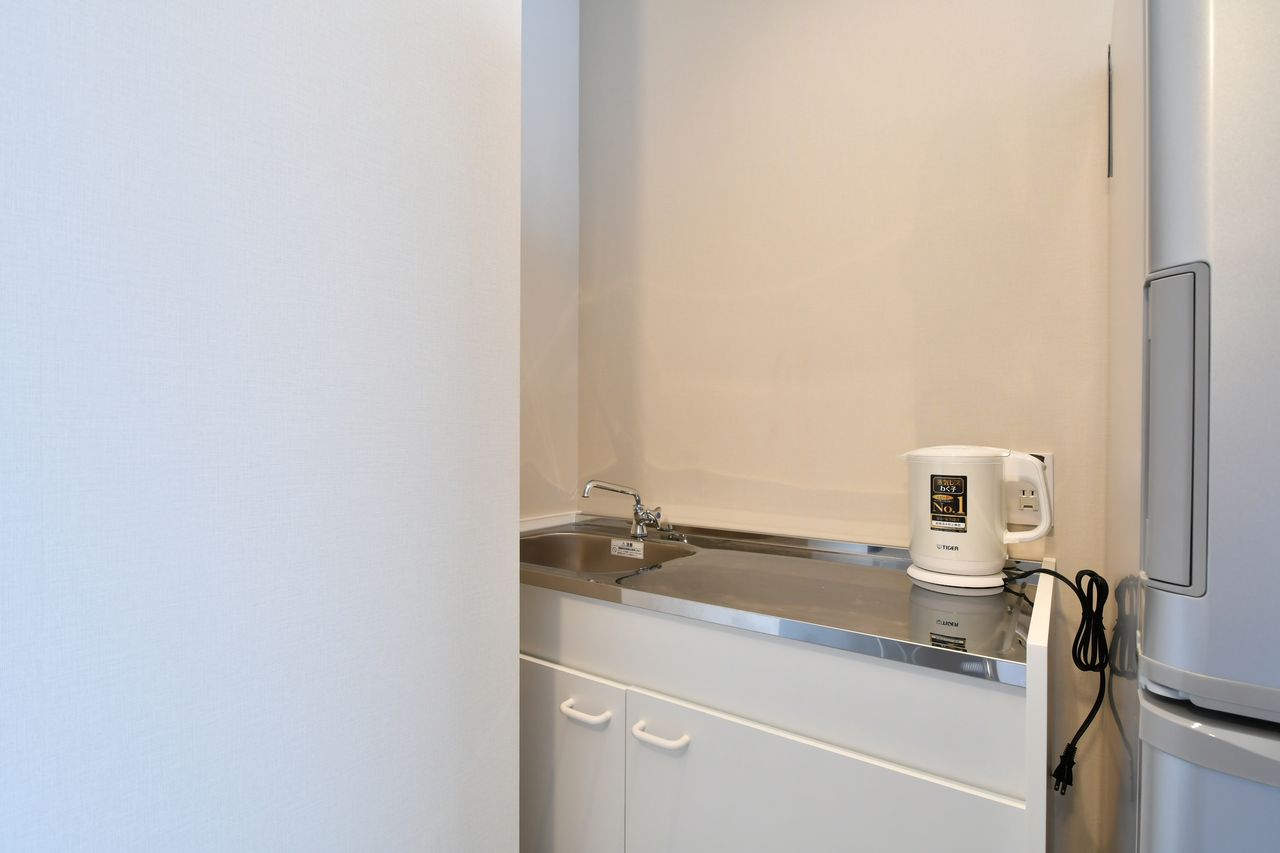 シンプル×可愛い。水色の冷蔵庫付きのお部屋。白楽駅9分