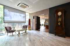 渋谷まで32分、自由が丘まで27分。アーバンテラス藤が丘は、 ユースカルチャーの発信地、渋谷周辺へアクセスしやすく、 デザインとスタイルにこだわる大人のための大型シェアハウスです。田園都市線 藤が丘駅からなだらかに上ること9分。周囲に自然が残る住宅地の丘にアーバンテラス藤が丘は佇んでいます。まず、みなさんを出迎えてくれるのは、シンプルモダンなグレーの壁に レトロな玄関灯がついたファサード。その先に藤色のタイルカーペットを敷き詰めたラウンジが広がります。中央部ヘリンボーン張りの上げ床には、グレーのローソファとローテーブル。その周りを数種のフリッツ・ハンセンのチェアやテーブルが囲み、本棚、 壁面の緑、ペンダントライトが落ち着きを演出。窓からは緑の景色を一望。デニッシュモダンなラウンジがみなさんの毎日をビビッドに彩ります。同じくデニッシュモダンに仕上げたシアタールームや女性用フィットネスルーム・男性用トレーニングルームもまた、日常にメリハリを与えてくれるでしょう。居室はゆとりの14.4平米。エアコン、デスク、チェア、カーテン付きで引越しも簡単。収納も十分です。みなさんの日常がビビッドに色づくアーバンテラス藤が丘。大型シェアハウスだからこそできたデニッシュモダンをご堪能ください。