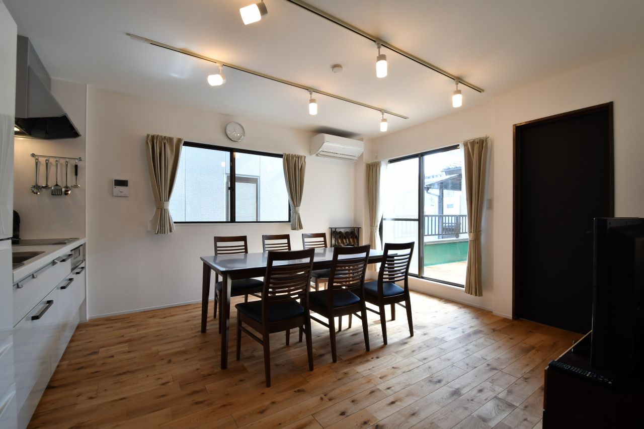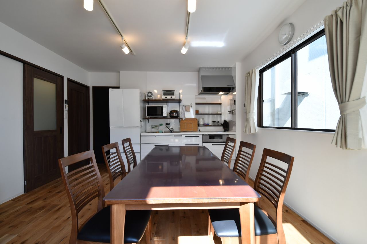 駅歩1分程度利便性抜群で、オートロック玄関のセキュリティ付でオーガニック風の女性専用のシェアハウスです。天然木材使用の大型厨房設備があります。キッチン/業務用冷蔵庫、2台ディスポーザー(生ごみ処理機)2台、炊飯器2台、電子レンジ2台、ケトル2台、オーブンレンジ1台、コーヒーメーカー2台。その他食器類充実。レストランの厨房のようです。リビング/40型テレビ、カウンターテーブル。浴室/シャワールーム4室。トイレ/ウォシュレット付様式トイレ4室。乾燥機付洗濯機4セット。インターネットは最新ギガラク Wi-Fi導入済み。個室設備/エアコン、カーテン、照明。清掃は週2回+特別清掃あり。友人宿泊不可、男性立入不可。館内全面禁煙。個室は、暗唱式キー操作で利便性抜群!