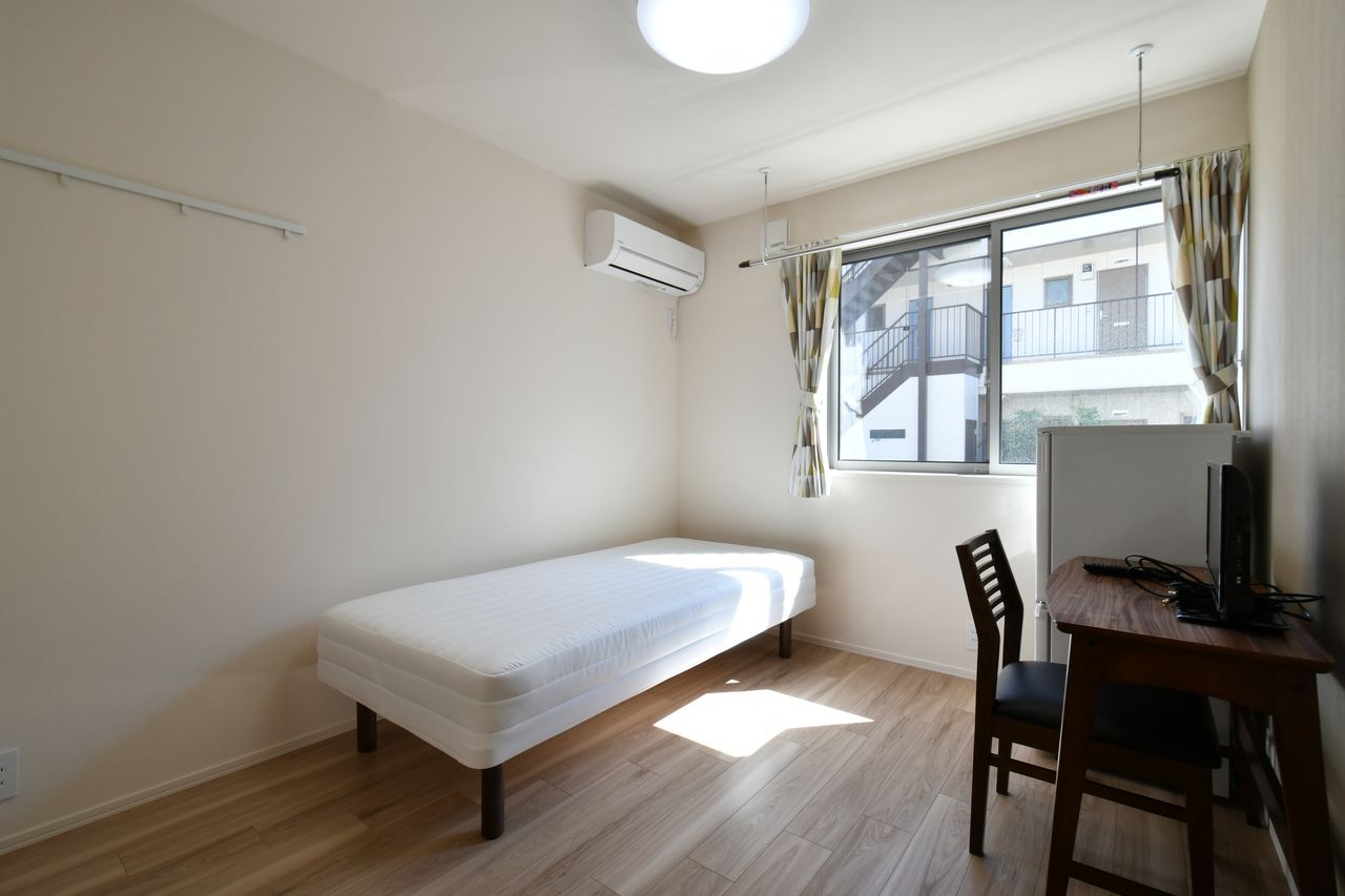この物件は周辺エリアに砂町銀座商店街があり、安くておいしい飲食店が非常に充実しています。都営新宿線亀戸大島駅まで徒歩7分、そこから東京駅までは18分、新宿駅までは17分という好立地です。窓の大きな部屋が多い事と、他のゲストハウスと比較しても広々とした部屋をご用意しているのが亀戸大島物件の特徴です。