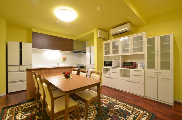 横長のキッチンの調理場を効率良く使える配置なのでは、とすら思えてきます。