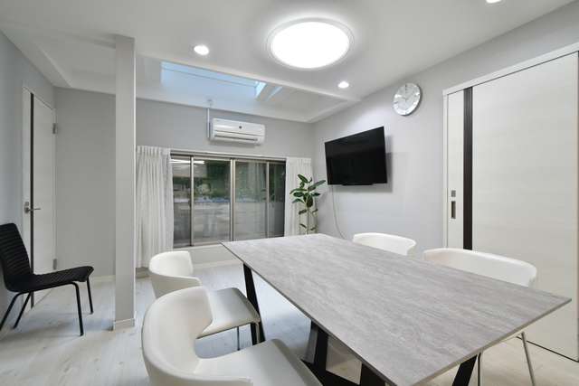 【2024年2月リニューアルオープン】2023年10月から間取り変更を含む大規模リノベーションを実施。大きな天窓があるリビング。内装は白×グレー基調でシンプル。清潔さを大切にしています。年に数回ほど気楽なごはん会を開催。大人の距離感でシェア暮らしを楽しんで頂けるよう心がけています。最寄りの淡島バス停留所まで徒歩3分。渋谷まではバスで13分。下北沢や三軒茶屋も徒歩圏内です。門から玄関までの通路に自転車置けます(無料)。3Fの屋上ではお布団を干したり、星空を眺めながらお酒を飲んだりできます。