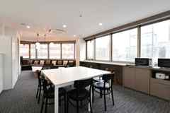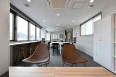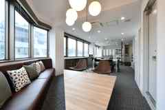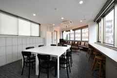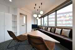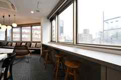日中は陽が差し込み明るく気持ちいいラウンジスペース。日が落ちると、恵比寿の雰囲気にマッチしたムードのある空間に。オトナなひとときはいかが?