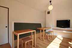 【吹き抜けから降り注ぐ、優しい光が気持ちいい】玄関扉を開くと、リビングの開放感がとても気持ちいい。森の中に一歩踏み入れたかのごとく、トップライトからさしこむ自然の光がまるで木もれ陽のよう。3階の天井まで約8.5mの吹き抜け空間となっているリビングは、ソファでくつろぐのに最適です。リビングはラワン材(木材)の壁面、中階段で上の階に昇ると真っ白く塗装された壁面。茶色いラワン材の外側壁が白い内側壁をやわらかく包み込む。建物内で生活するシェアメイトさんたちを建物全体で包む~tutumu~ようです。インテリアは、ダイニングのラビットチェア(妹島和代ブランドのうさぎの椅子)をはじめ、デザイン性とやさしさが調和されたトーンとなっております。デザイン監修は若手建築家×空間コンシェルジュ。tutumu高円寺のためにデザインされた造作キッチンをはじめ、LDK床はタイル、各個室の床は樺材のフローリングと素材にもこだわりました。3階の個室はまるで屋根裏部屋の様でワクワクすることでしょう。普通の住まいには飽きてしまった方に、是非ともお勧めです。路地のつきあたりに佇む我が家に「ただいま」と帰って来た時、デッキに囲まれたシンボルツリーの「ヤマボウシ」があたたかく迎えてくれます。春には白い可憐な花が楽しみです。さらに、安心・安全をモットーに、警備保障サービス加入、複製のできないカード鍵の採用。女性による清掃サービス、インターネット使い放題、個別メールBOX、宅配BOX、有機栽培農家さんのお野菜が届くなど、充実した設備とサービスは、都心で働く素敵な女性にピッタリです。お洒落なカフェと雑貨屋さんでおなじみの高円寺に暮らし、自分らしさを探求してみてはいかがでしょう。街のお洒落な建物やお店、シェアメイトたちとの交流は、きっと生活の幅も広げてくれるはず!阿佐ヶ谷、新高円寺にも近い佇まいは、とても魅力的です。リモートワークで家にこもる時間が長くなると、ふと、人の温もりや気配が恋しくなる。だからつかず離れずのシェア暮らしで良かった、という方が増えています。