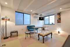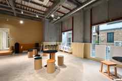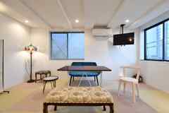 日中は陽が差し込み明るく気持ちいいラウンジスペース。日が落ちると、恵比寿の雰囲気にマッチしたムードのある空間に。オトナなひとときはいかが?