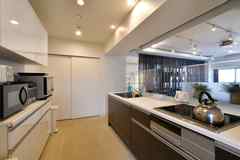「TheFinest 武蔵新城」が目指したのは、都心アクセスの利便性と自然との触れ合いを両立するバランス。最寄りの武蔵新城駅だけでなく、バスによる武蔵小杉駅の活用がポイントになりそうです。大型ラウンジ&キッチン、専用ワークスペース、フィットネス、防音室などの共用設備に加え、収納が充実した広めの専有部